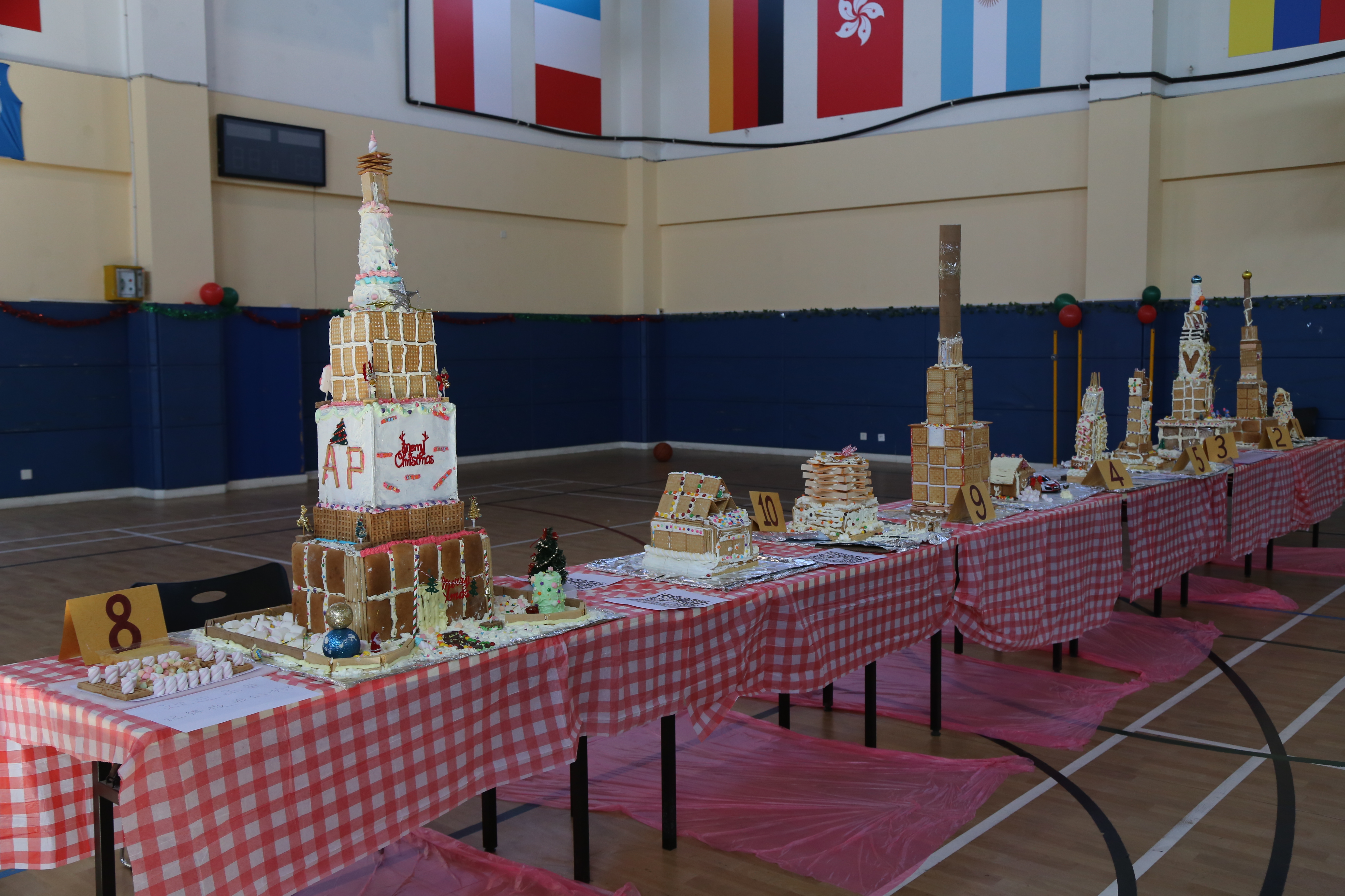 令各位师生感到精彩的是bread and cake building, 同学们各自发挥自己的想象能力将圣诞蛋糕制作成各种形状的房子、庄园与各种形状的样子。作品新颖独特也别具匠心,看到那一座座由奶油蛋糕修筑的高楼大厦不禁让我们感叹同学们对活动细心雕琢和精益求精的精神。的确给节日带来很多惊喜。其中国际语言系用各种不同的语言描述圣诞节给了同学们更多的文化指引。圣诞节是每年固定的盛大节目,但是每个国家会根据自身文化的特点进行圣诞庆祝。学校开设不同语言的课程旨在让学生了解更多其他国家的语言风俗习惯,为学生今后具有国际观提供好的文化平台。