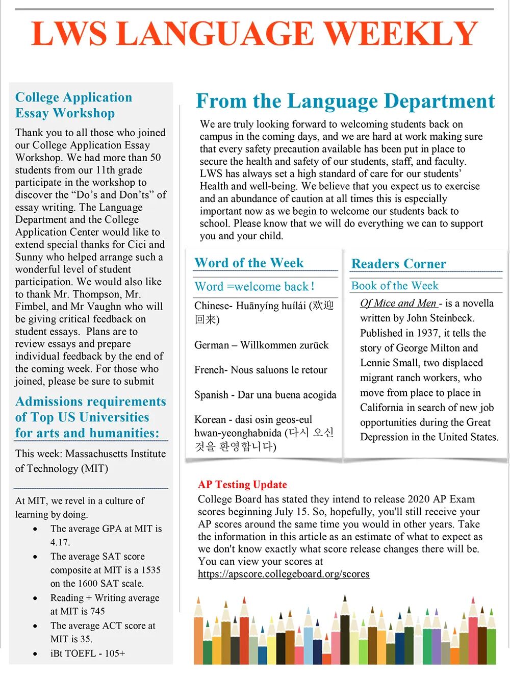 精心准备,助力复学—美高学校每周教学计划(5.25~5.29)